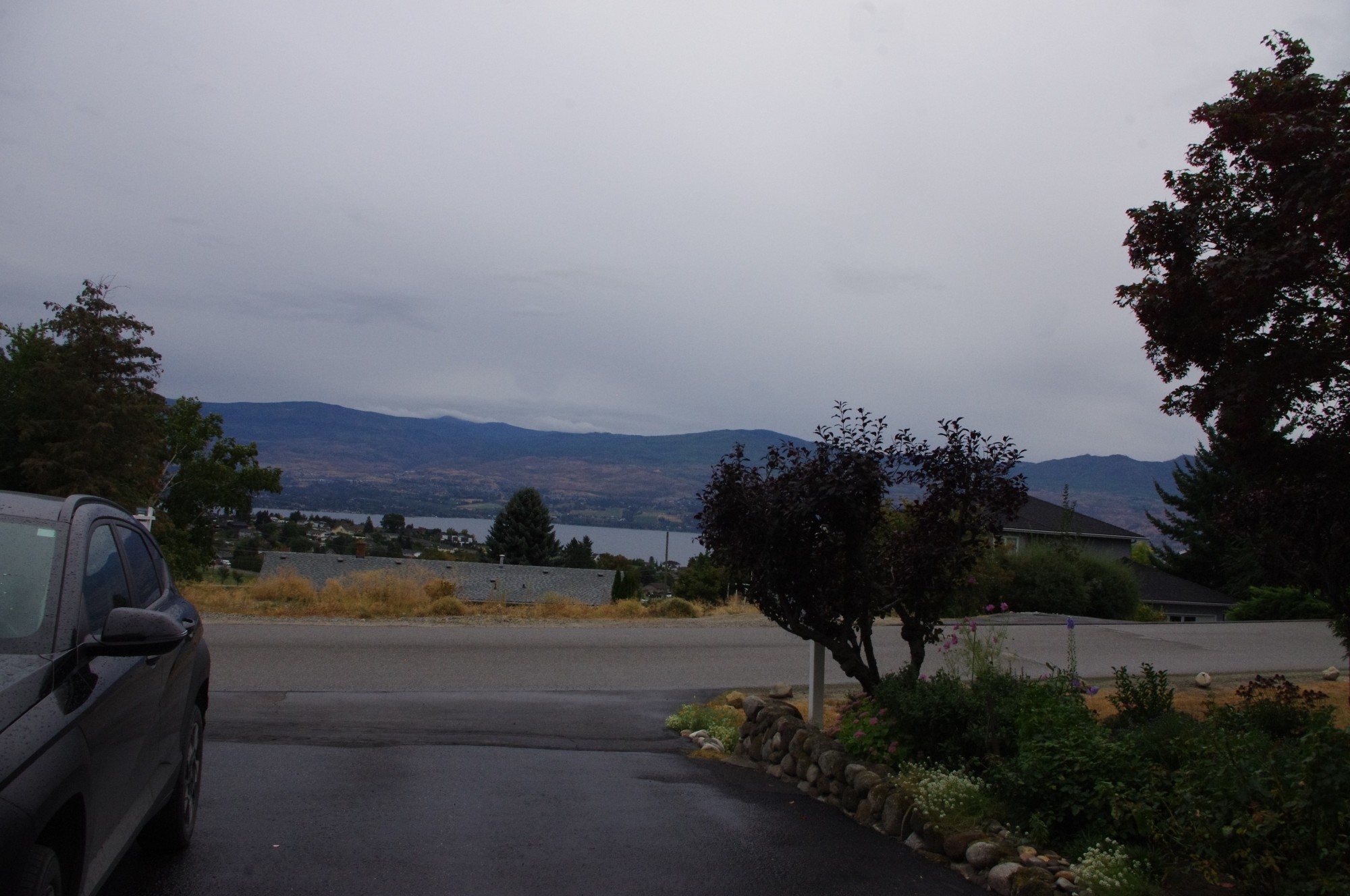 We were barely on the highway south from Kelowna before a low tire pressure light came on in our car. We pulled into a KalTire and they removed a screw and patched the tire. Off we went.