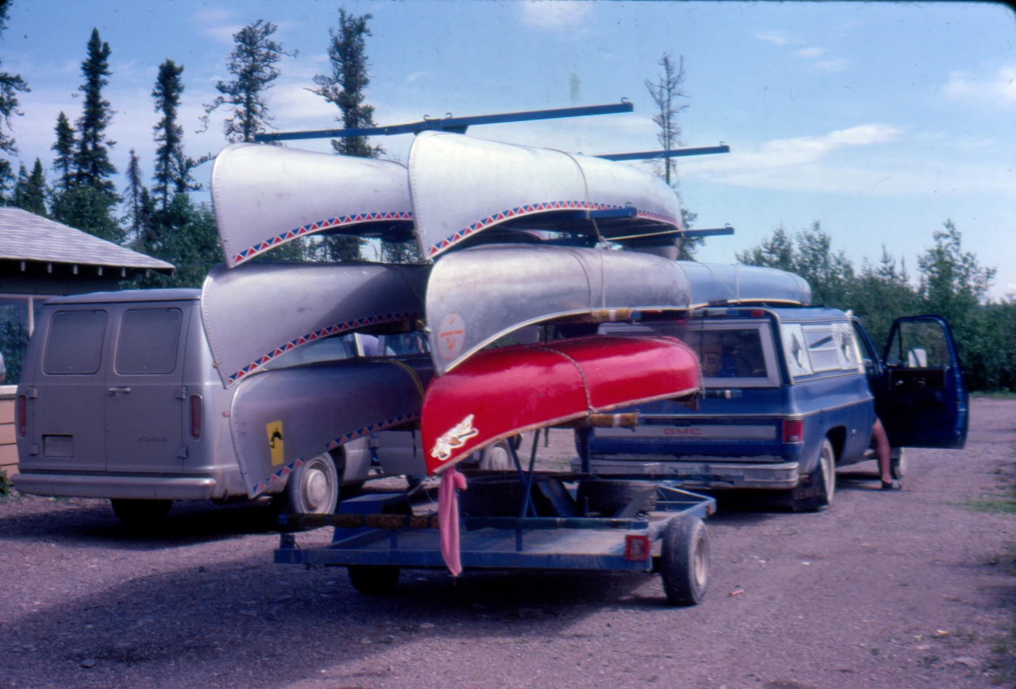 At Churchill River Outfitters. Seven canoes ready for our trip.     [ Jul 1, 1978 ]     2 / 27