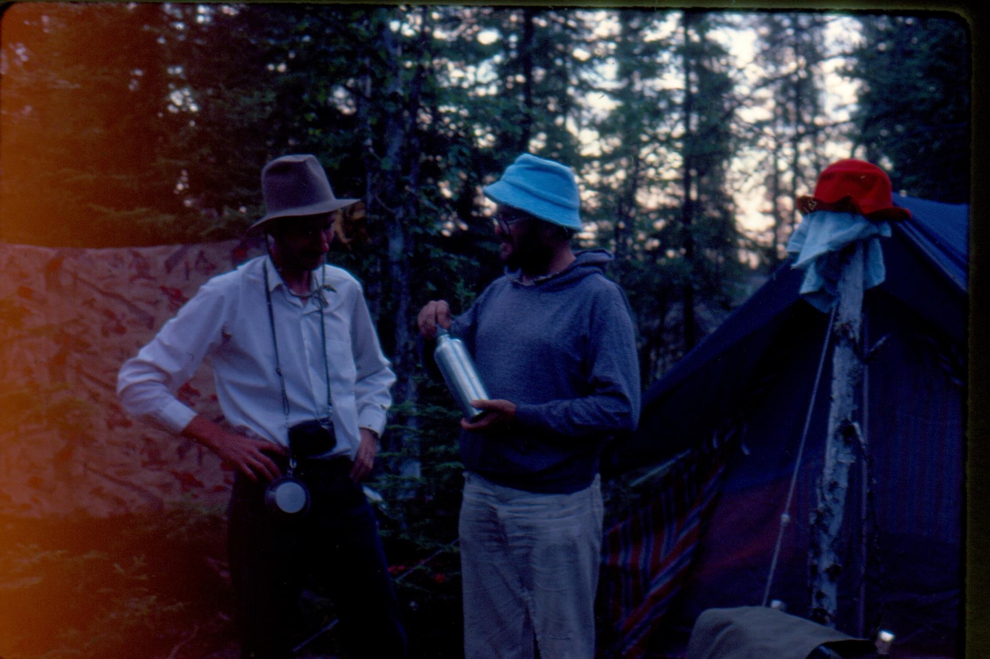 Asiski Lake campsite. Geo is not sure of Marcel.     [ Jul 3, 1978 ]     20 / 27