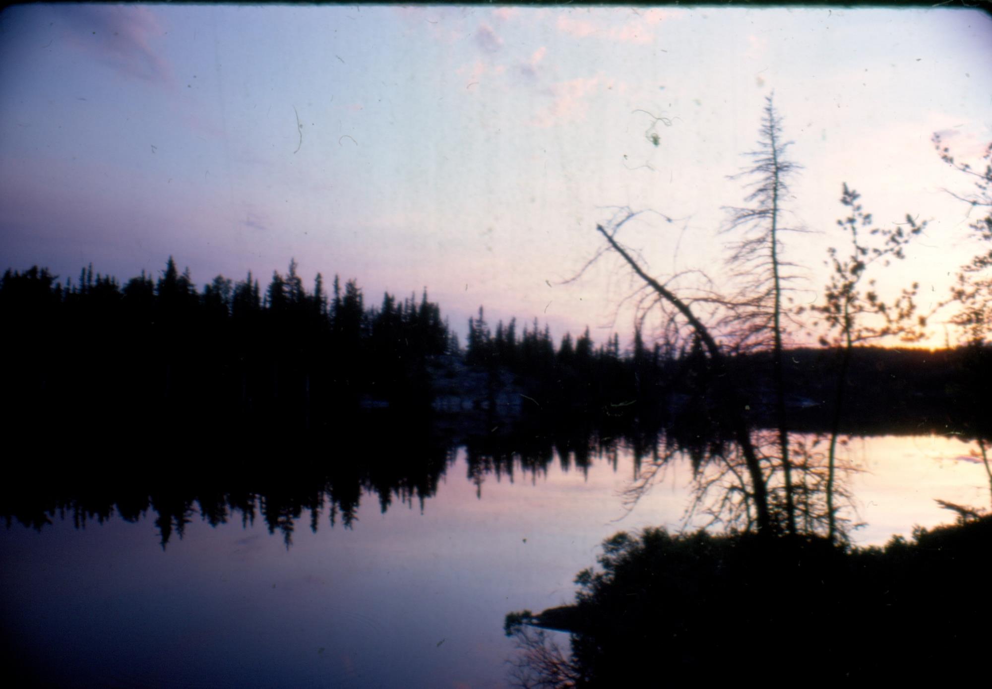Asiski Lake. Monday nite camp - beautiful.     [ Jul 3, 1978 ]     19 / 27