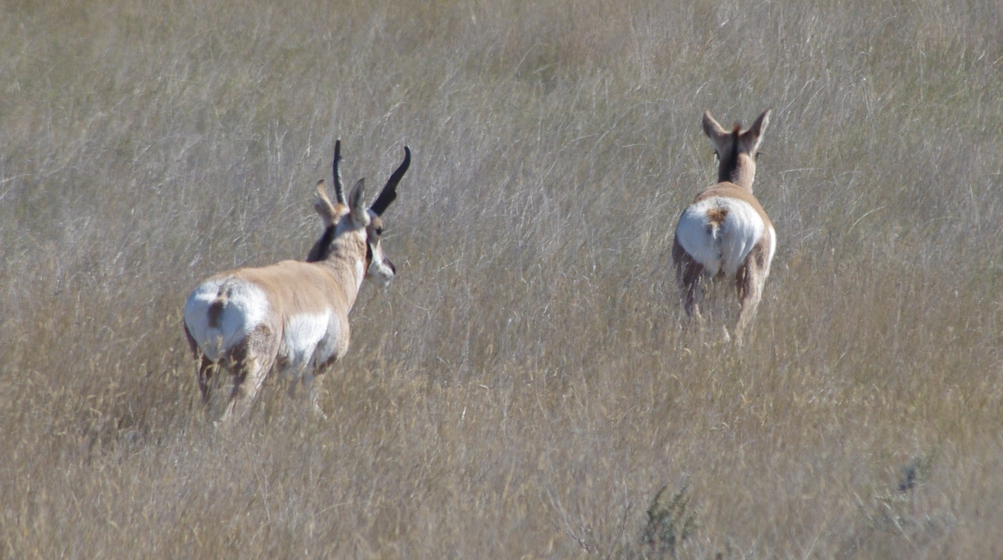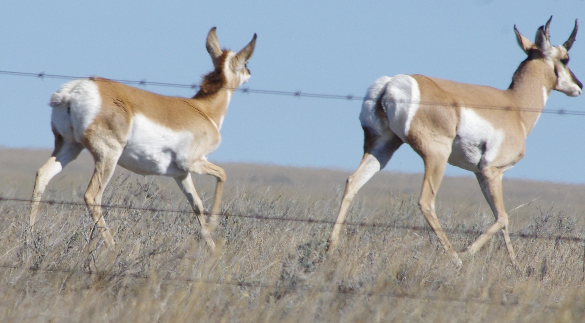 Antelopes are wary of vehicles like most wildlife but they will stand and stare near fences as you drive by. But note, if you stop your vehicle, the antelope are gone. We are not sure why, but it may relate to their learned knowledge about stopped vehicles having gun-carrying hunters in them.