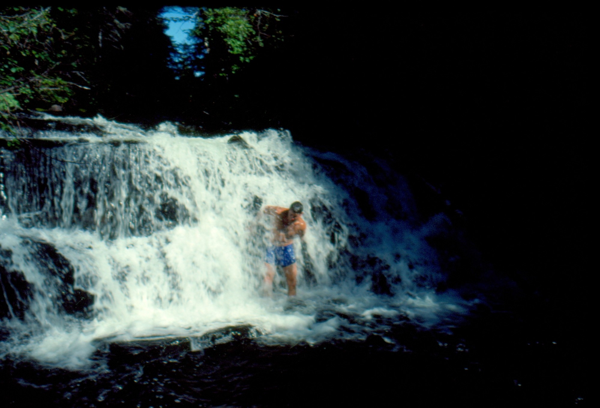 Ralph gets sprayed by waterfall at Freestone Lake     [ Jul 29, 1991 ]     8 / 23